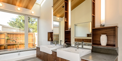 This is a LEED Rated home, with a rating of LEED Platinum. That translates to the most air/water tight, and efficient home we have built to date. A photovoltaic solar array on the roof provides power to handle the electric loads, and a highly efficient boiler provides hot water for both domestic and space heating needs. The glass in each of the windows and doors was carefully selected for high performance based on its orientation to the sun. Each element utilized on both the exterior and interior of the home was chosen for both high efficiency, and sustainability/durability. Healdsburg Lumber was at our side during the entire process, assisting with product research, technical support, and of course providing the highest quality in materials.